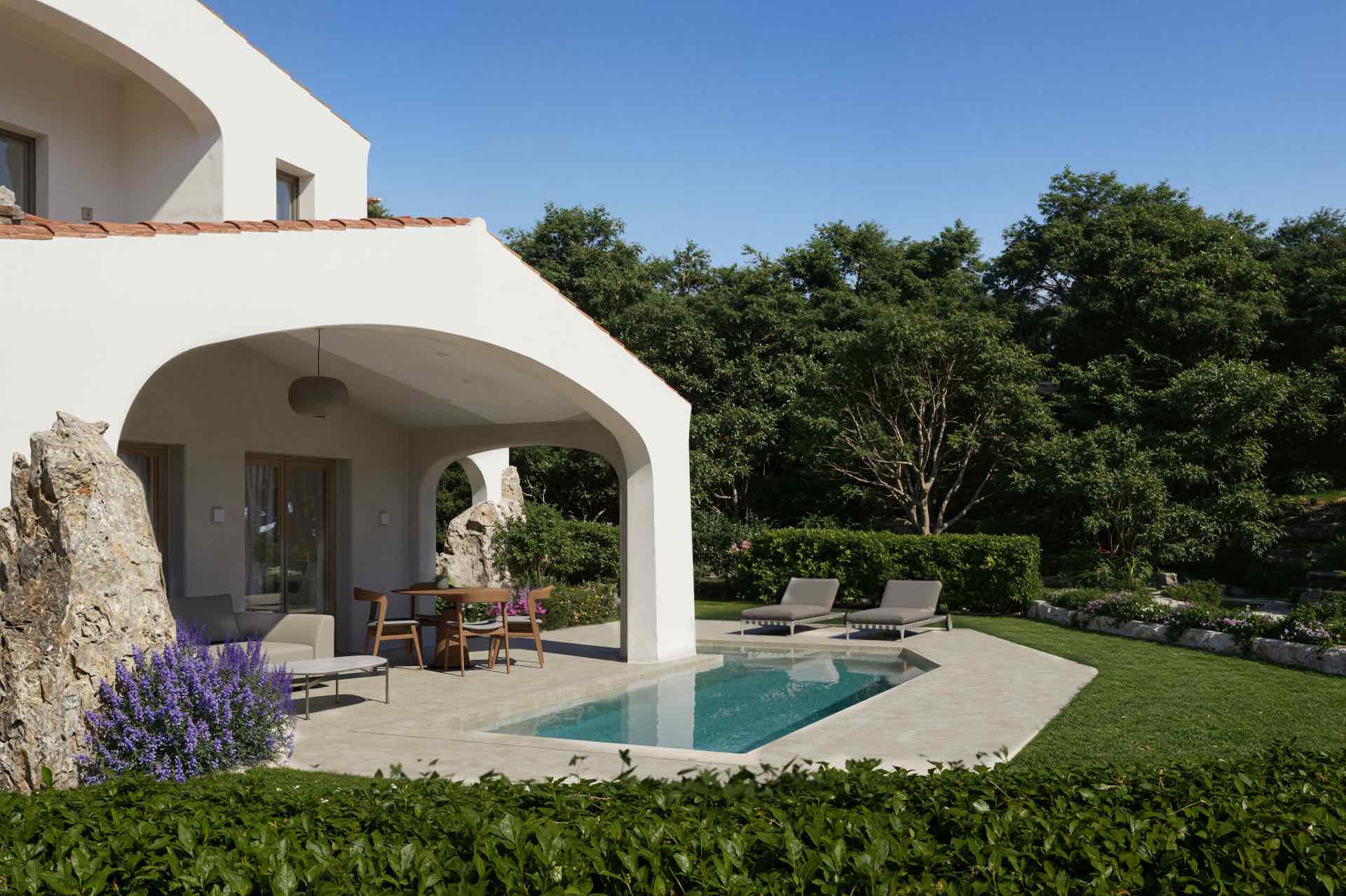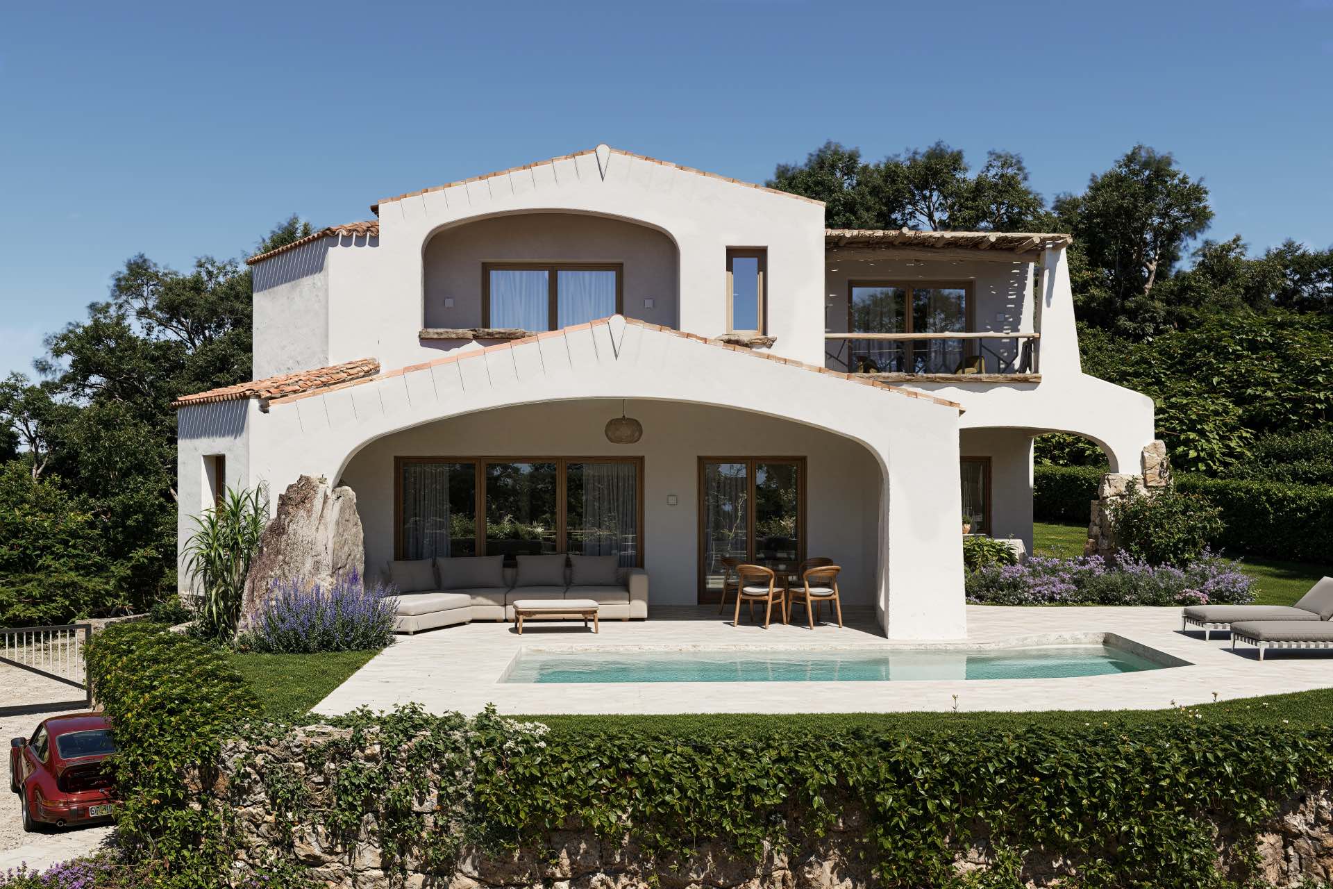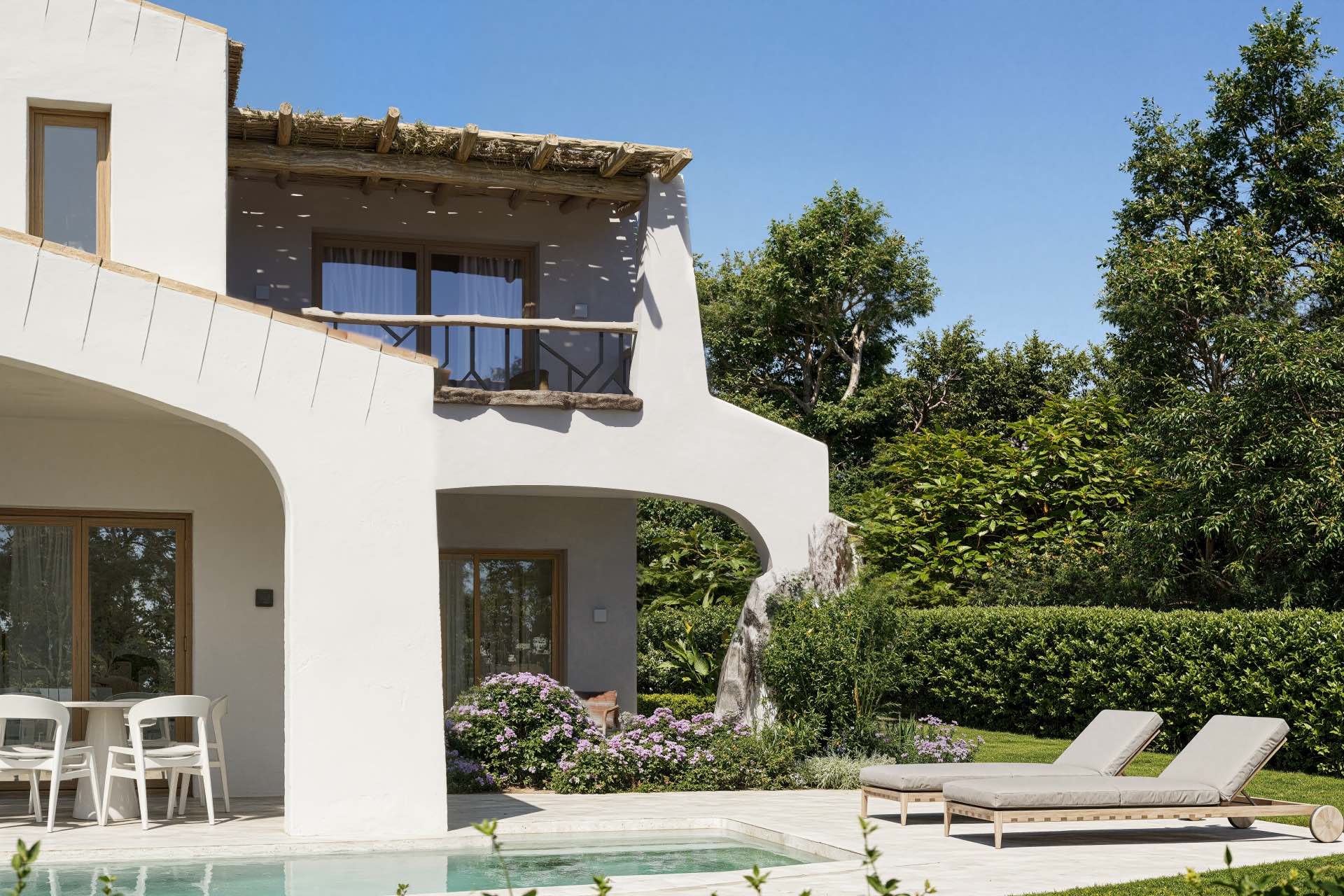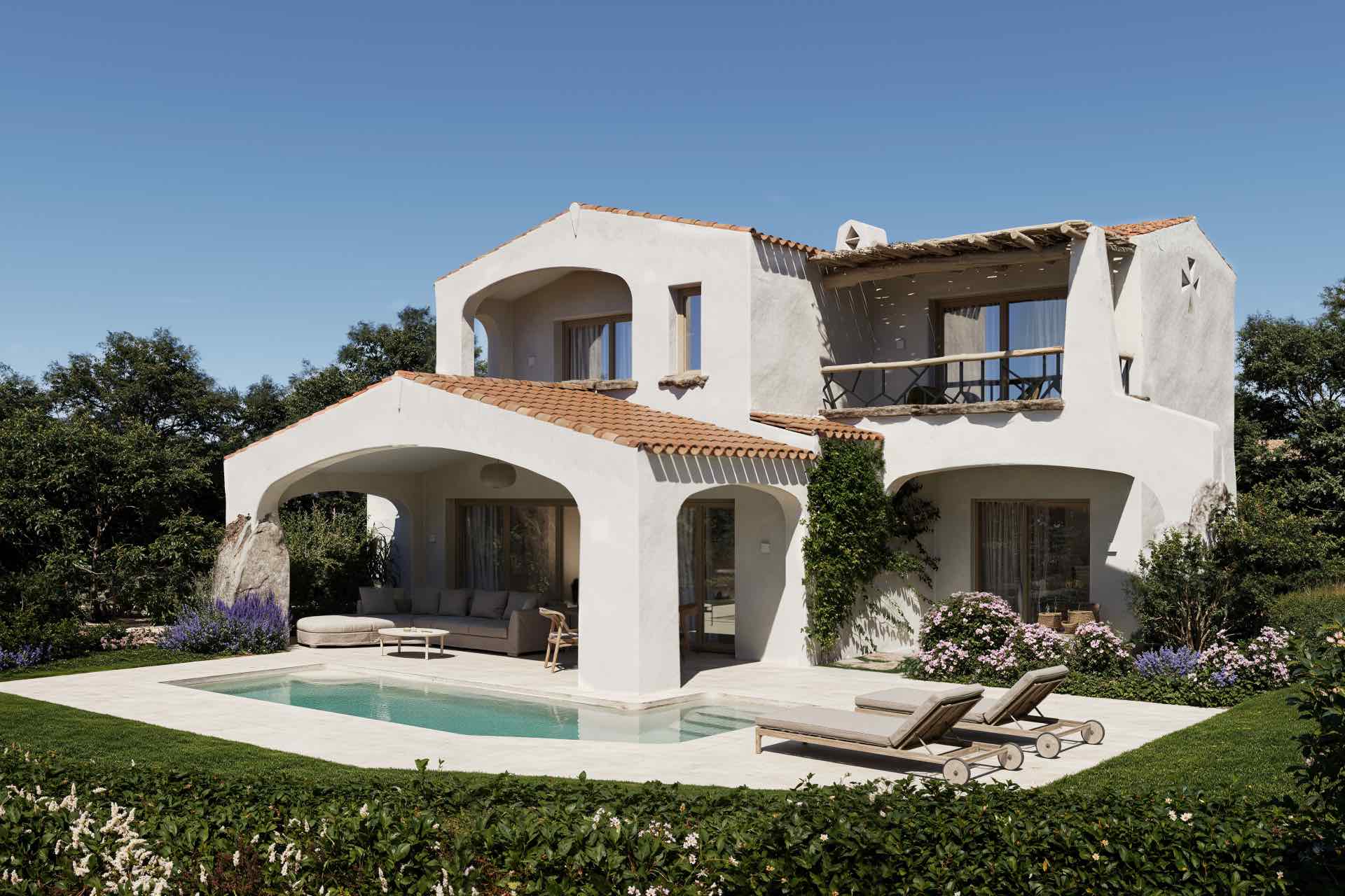 Lo stile richiama le migliori espressioni dell’architettura della Costa Smeralda, con elementi distintivi quali archi, monoliti in pietra, inserti in pietra sulle facciate, comignoli dal disegno ricercato e dettagli capaci di conferire alle residenze carattere, eleganza e una forte identità.