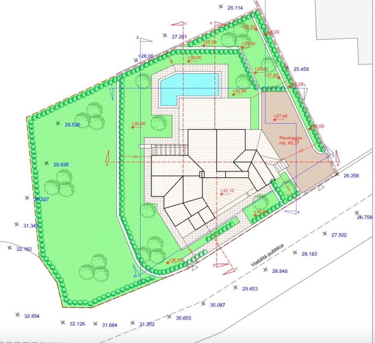 - Al piano interrato trovano spazio un comodo garage, un’ampia cantina e il locale tecnico a servizio della piscina privata. Un cavedio in cemento armato contribuisce inoltre a proteggere il piano terra da eventuali infiltrazioni.