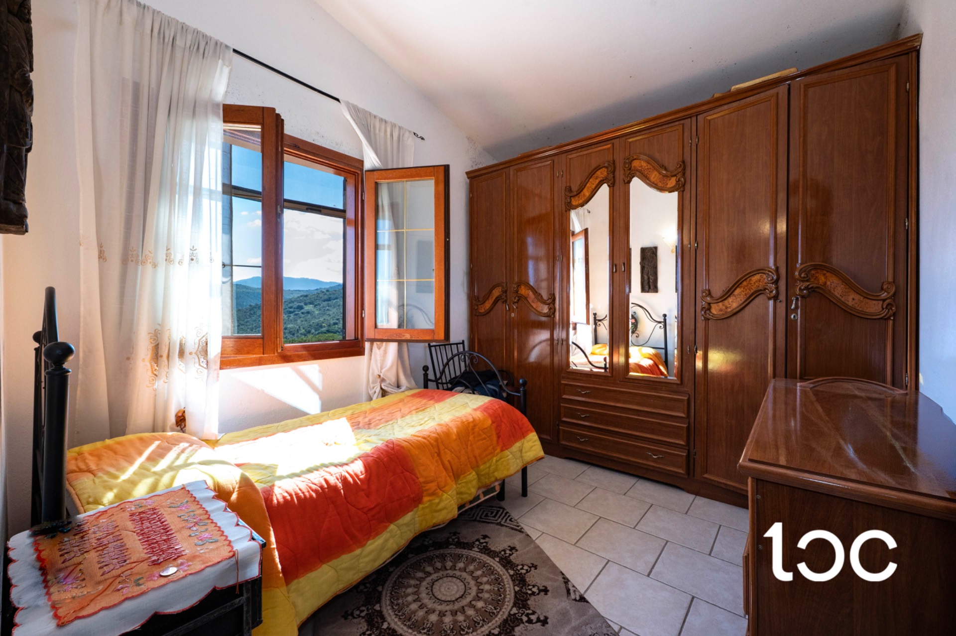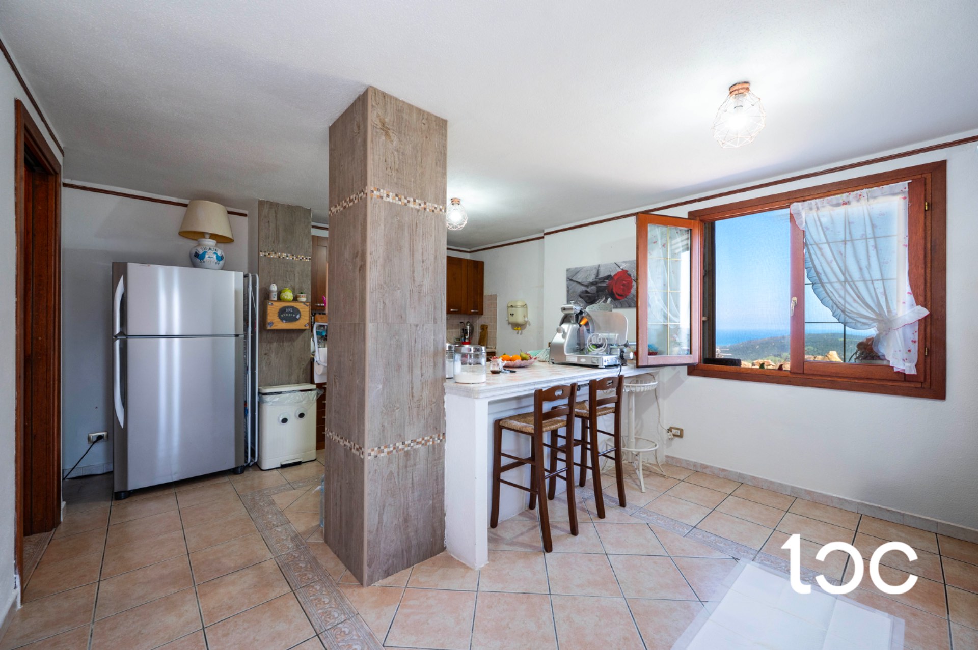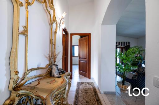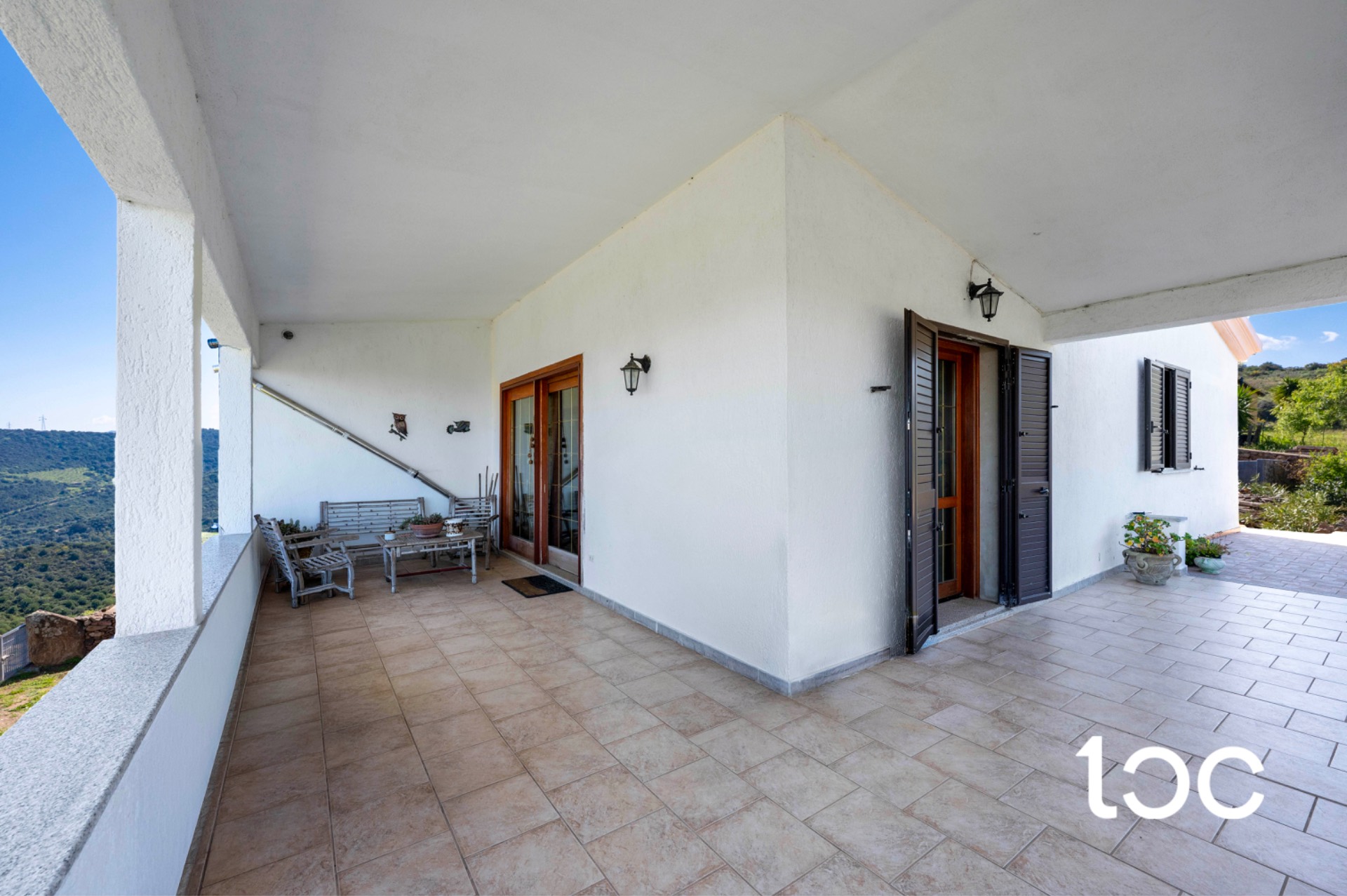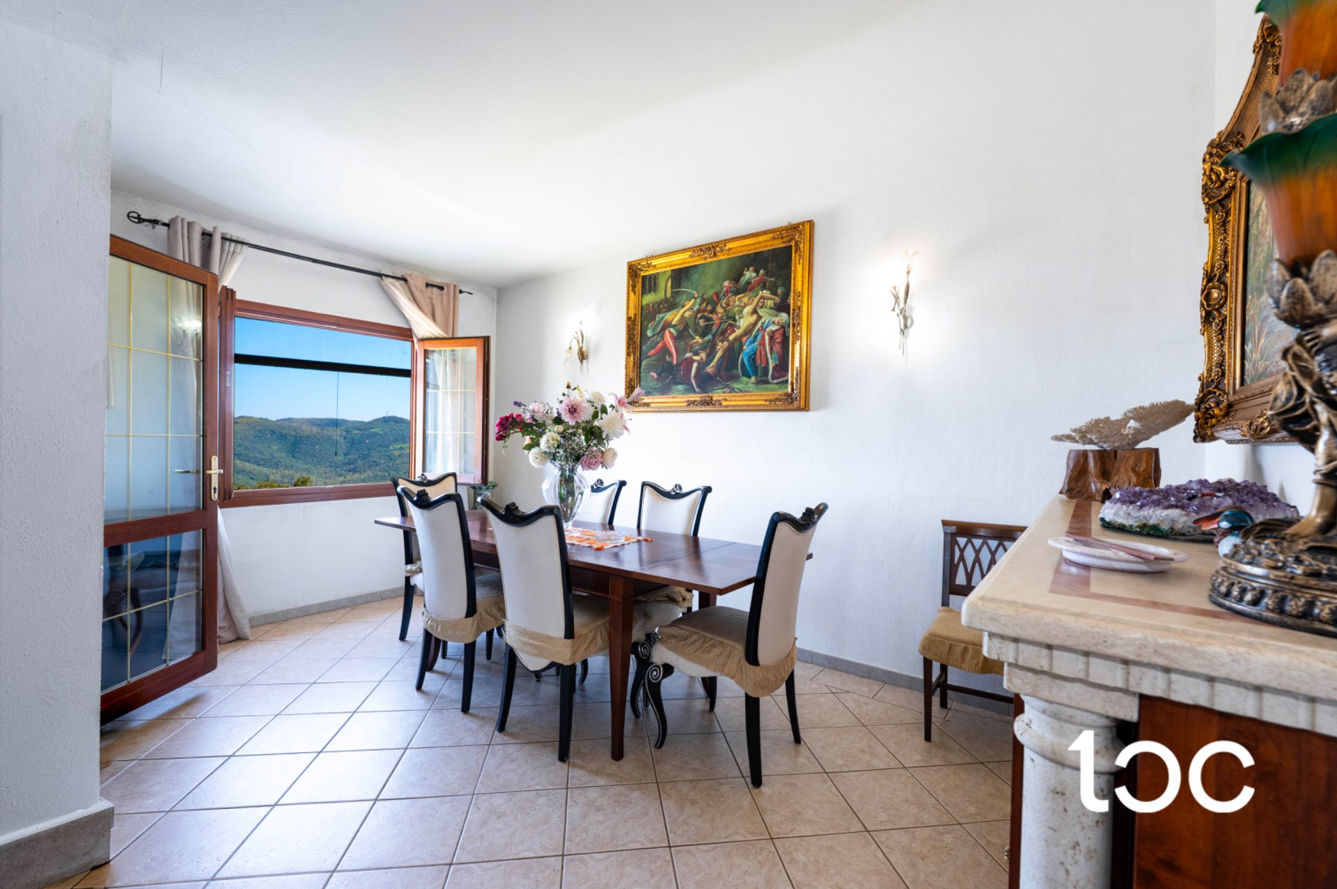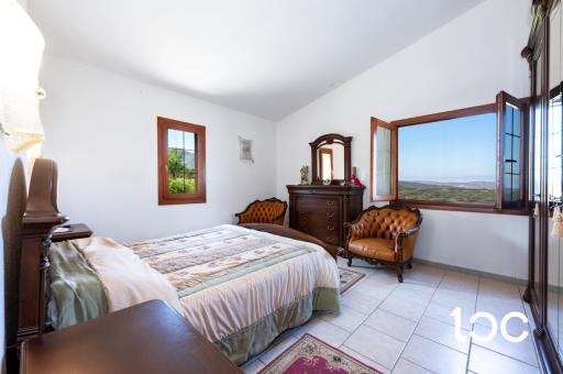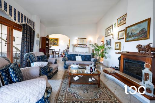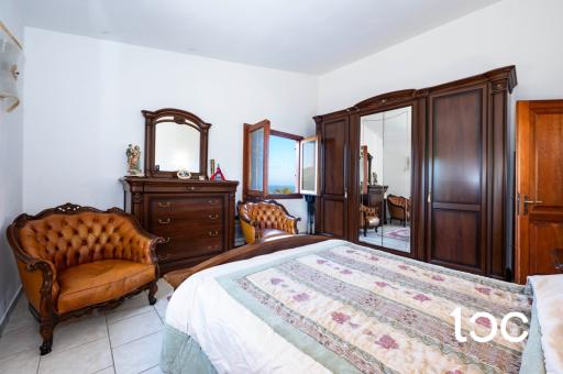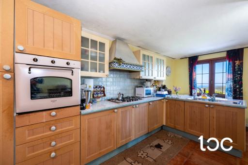 L’ingresso introduce a una magnifica veranda panoramica, vero fulcro della proprietà, ideale per vivere appieno il paesaggio circostante in ogni momento della giornata. Gli ambienti interni, ampi e luminosi, comprendono un elegante soggiorno con camino, una raffinata sala da pranzo, una cucina separata, tre camere da letto e un bagno.