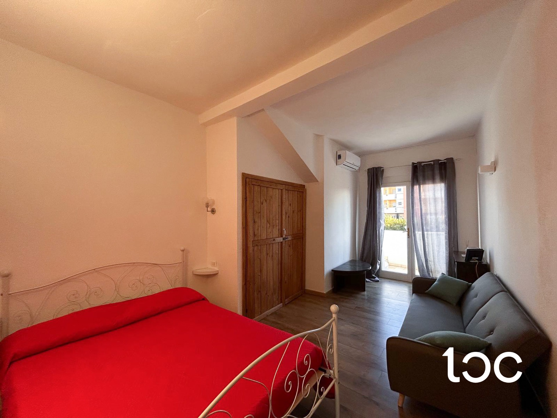 Qui tutto è a portata di mano: negozi, locali, servizi di ogni genere, e soprattutto la splendida spiaggia di Budoni, raggiungibile tranquillamente a piedi grazie alla posizione privilegiata. L’appartamento si apre su un piccolo ma pratico soggiorno con angolo cottura, perfetto come punto d’appoggio nelle giornate al mare; la camera da letto è particolarmente ampia e accogliente, dotata di letto matrimoniale e divano, mentre la veranda offre uno spazio riservato ideale per rilassarsi osservando la vita del paese dall’alto.