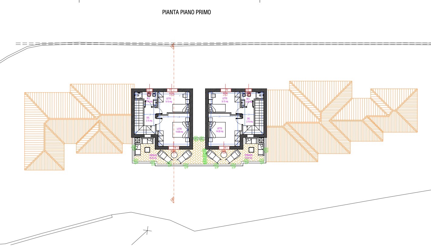 Ciascuna villetta si sviluppa su due livelli per una superficie interna di circa 90 mq e uno spazio esterno di circa 100mq.