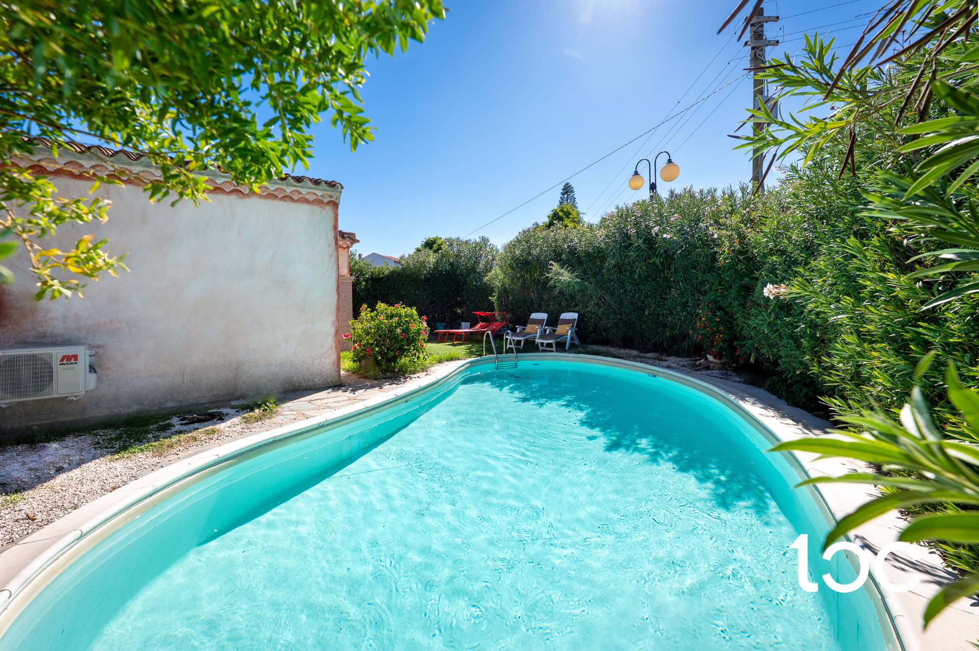 Il Giardino di metratura generosa dispone sia di ingresso pedonale che carrabile, e si sviluppa su tre lati. La piscina privata a fagiolo di 30 metri quadrati come specchio d’acqua rende perfette anche le giornate più calde d’Estate. In fine, i due posti auto scoperti interni, sono comodissimi per parcheggiare anche nei mesi più affollati. Completa la proprietà una comodissima corte esterna in basolato con accesso dalla cucina dove troviamo un barbecue in muratura.