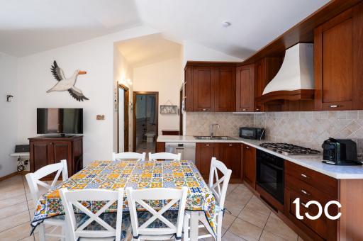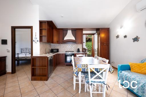 Ubicata in posizione strategica, al centro del bellissimo borgo e a pochi minuti dalle spiagge più belle della costa, l’immobile si sviluppa su un unico livello, ed è arredato finemente con materiali di pregio. Gli spazi interni sono così composti: luminoso soggiorno con cucina a vista, due ampie camere matrimoniali, due bagni e due verande coperte.
