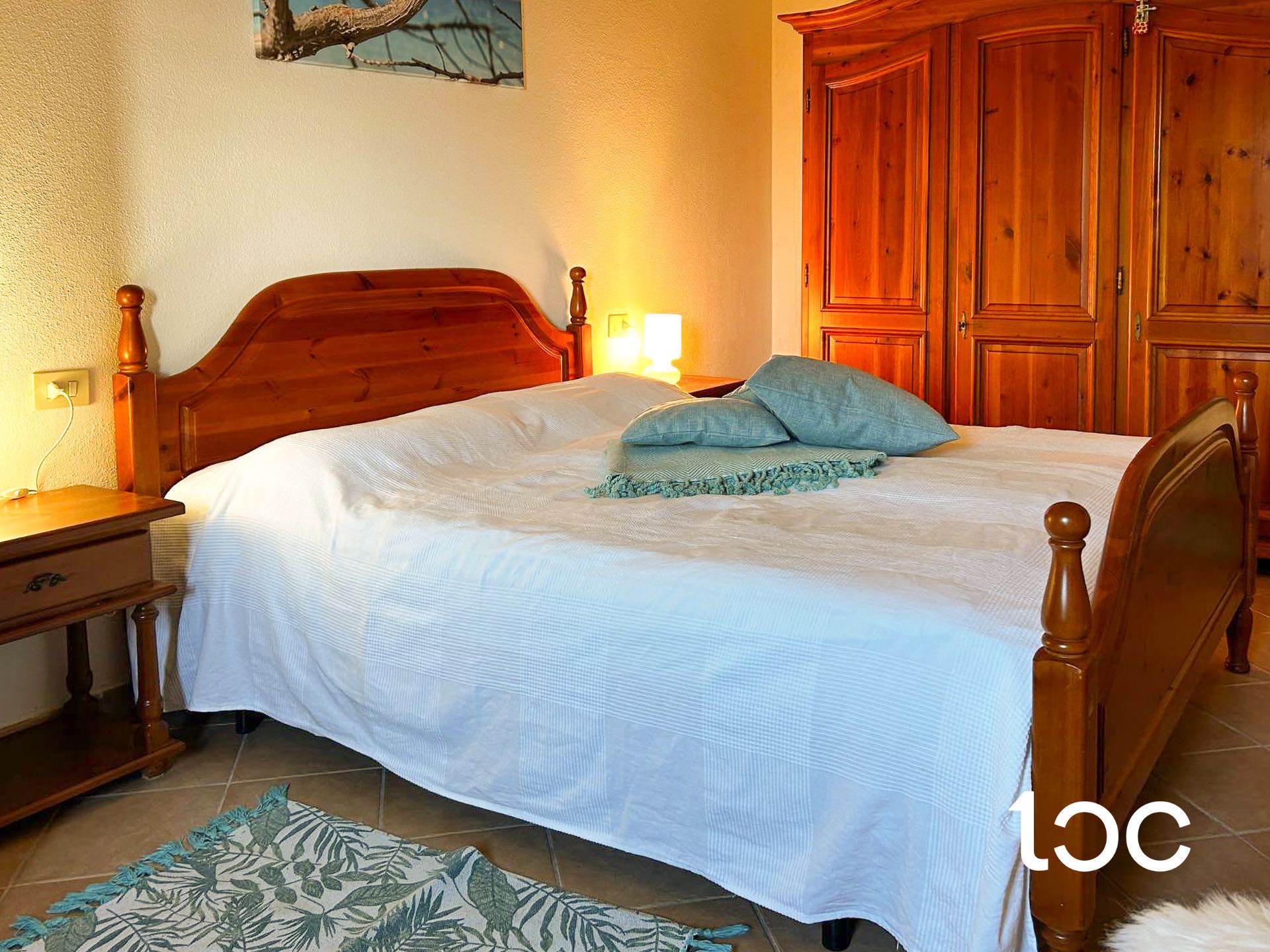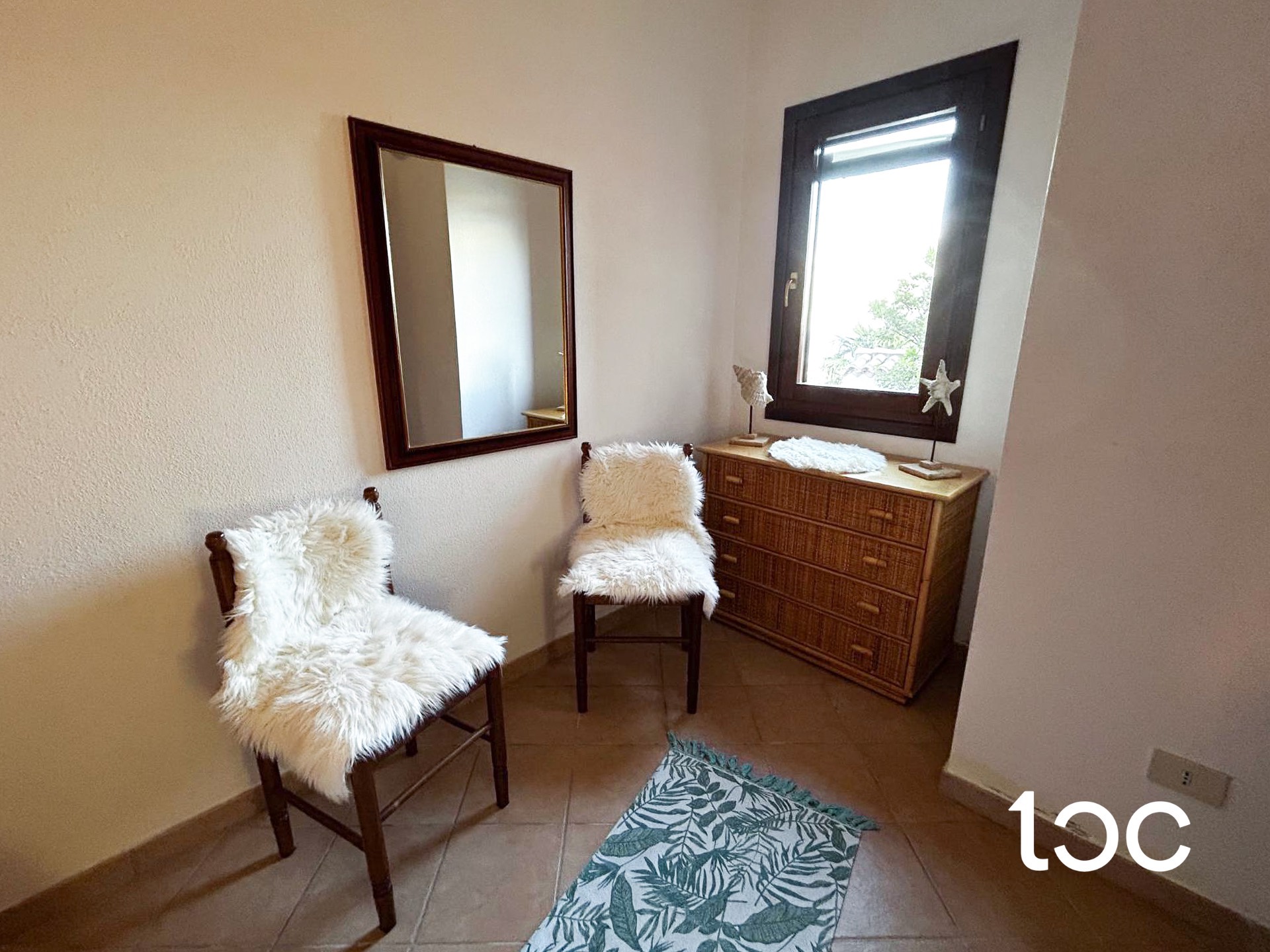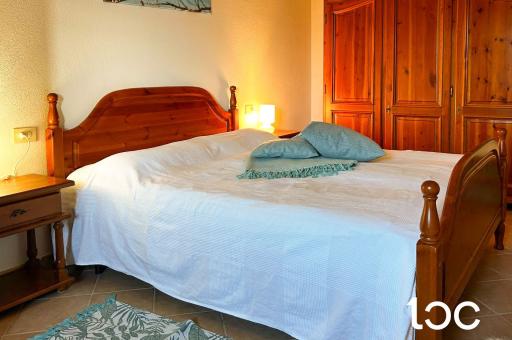 Der Schlafbereich besteht aus einem Schlafzimmer mit Doppelbett und einem Badezimmer. Die Wohnung ist außerdem mit einer Klimaanlage und einem zugewiesenen Parkplatz ausgestattet.