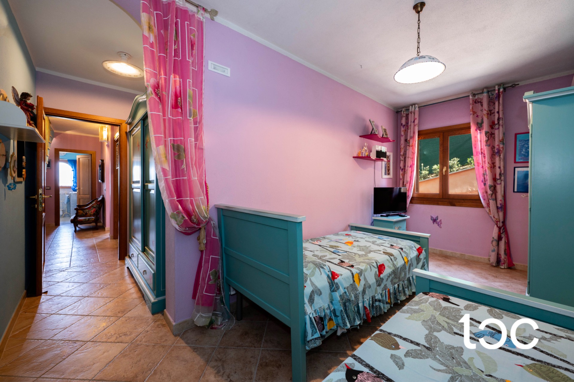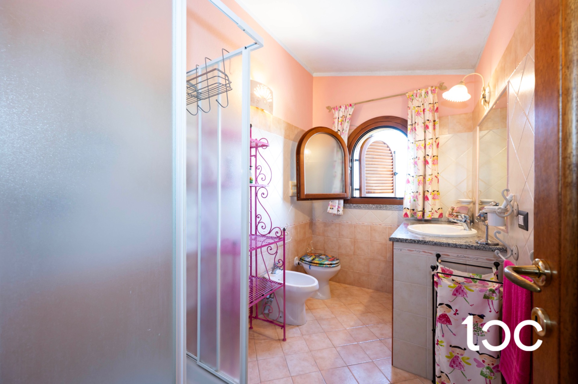 Der Wohnbereich ist das Herz des Hauses und beherbergt ein helles Wohnzimmer mit Küchenzeile, das für Geselligkeit und Komfort konzipiert ist. Ergänzt wird die Ebene durch ein Gäste-WC und eine wunderschöne Panoramaterrasse mit Blick auf die Insel Tavolara, perfekt für Mahlzeiten im Freien oder um Momente der absoluten Entspannung zu genießen.