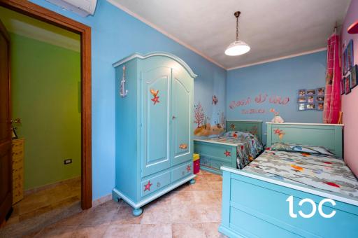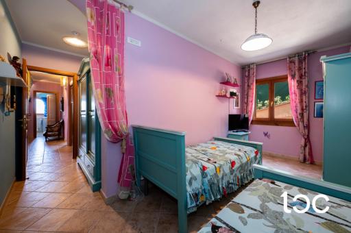 Der ruhige und private Schlafbereich besteht aus drei Schlafzimmern, einem Badezimmer und einem praktischen Abstellraum. Die Räume sind funktional und einladend, ideal, um die Bedürfnisse einer Familie zu erfüllen oder Freunde zu beherbergen.