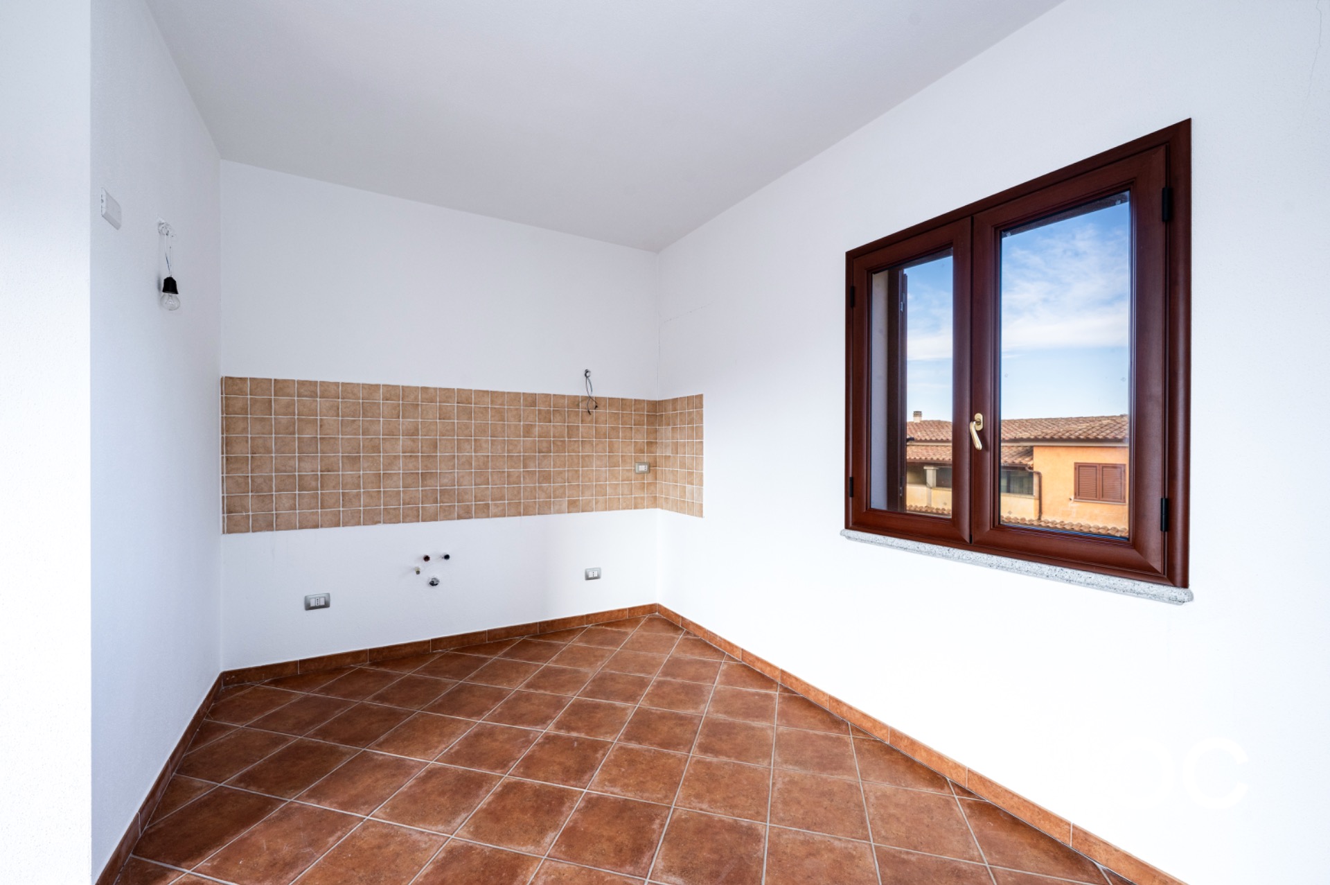 Das Anwesen besteht aus einer komfortablen überdachten Veranda, ideal für Mahlzeiten im Freien oder angenehme Momente der Entspannung, die direkt in den hellen Wohnbereich mit offener Küche führt.