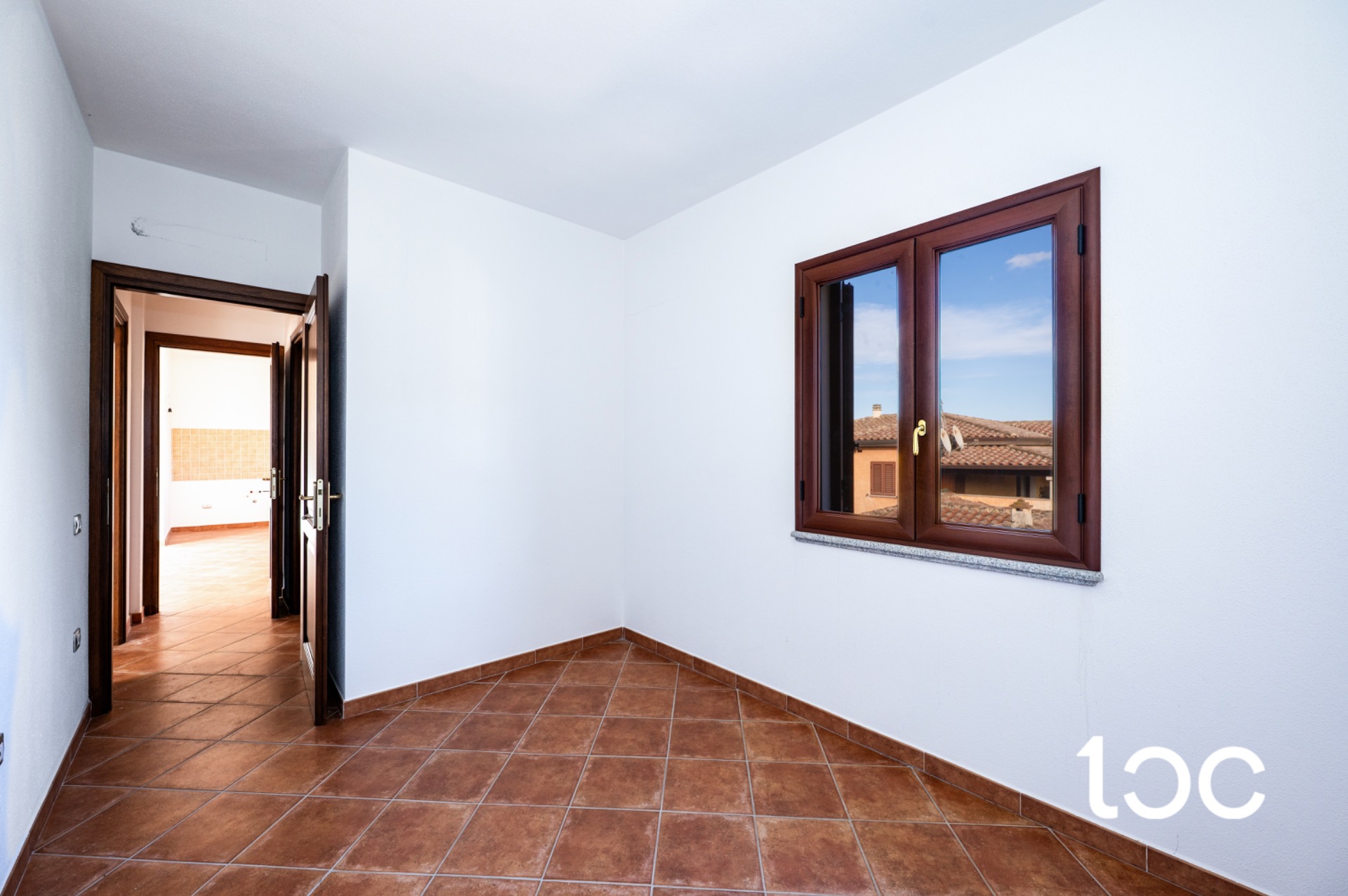Über einen funktionalen Flur gelangt man in den Schlafbereich, der aus einem großen Schlafzimmer mit Doppelbett, einem zweiten, vielseitig nutzbaren Zimmer - ideal als Zweibettzimmer oder weiteres Doppelzimmer - und einem modernen Badezimmer mit Duschkabine besteht. Es gibt auch die Möglichkeit einer Klimaanlage mit Wärmepumpe.