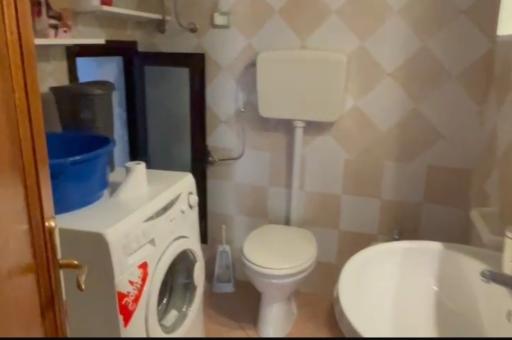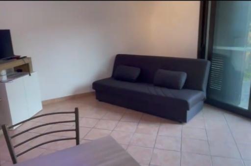 Der Zugang zum Erdgeschoss erfolgt über einen kleinen privaten Garten, der eine bequeme Veranda bietet, die zum Essen im Freien oder für entspannende Momente geeignet ist. Im Inneren befinden sich ein Wohnzimmer mit Kochnische, ein geräumiges Schlafzimmer mit Doppelbett, ein zweites Schlafzimmer mit zwei Einzelbetten und ein Badezimmer mit Fenster.