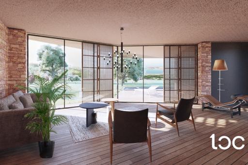 Die großen Panoramafenster, die mit Sonnenschutzsystemen ausgestattet sind, geben den Blick auf das Meer und die Küste der Costa Paradiso frei und schaffen eine fließende Kontinuität zwischen Innen und Außen. Die großzügigen und hellen Innenräume mit drei Schlafzimmern und drei Bädern sind so konzipiert, dass sie Komfort, zeitlose Eleganz und volle Lebensqualität bieten. Im Außenbereich garantieren mehr als 1.870 Quadratmeter privater Garten absolute Privatsphäre und direkten Kontakt mit der Natur, inmitten von wilden Olivenbäumen, rosa Granitfelsen und mediterranen Düften.