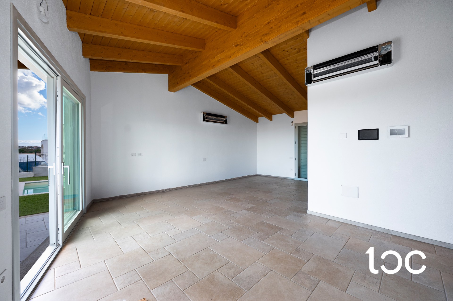 The interiors are distinguished by modern finishes and high-quality materials: selected floor and wall coverings, stone-effect resin shower trays, wall-hung bathroom fixtures, designer faucets, and thoughtful details in every room.The villa is equipped with an independent air conditioning system in every room, integrated home automation system to control lights, loads, and temperature, and a 5.4 kW photovoltaic system, prepared for storage batteries, to ensure energy autonomy and sustainability.