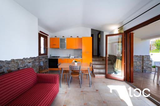 The apartment consists of a bright living room with kitchenette, a double bedroom, a twin bedroom and a bathroom. Outside there is a comfortable covered veranda, perfect for relaxing moments and outdoor dining, from which there is a pleasant view of the surrounding green hills and glimpses of the sea. The whole is enhanced by a garden, ideal for those who love outdoor spaces.