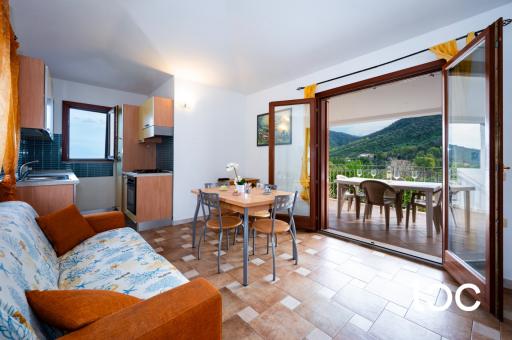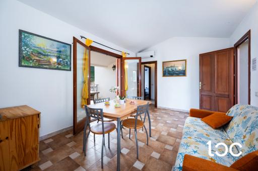 The apartment consists of a bright living room with kitchenette, a double bedroom, a twin bedroom, a bathroom and finally a comfortable veranda ideal for outdoor relaxing moments and summer dinners with a pleasant sea view. The property stands out for its excellent finishes, with the use of Sardinian stone and granite, which give character and quality to the rooms. A practical outdoor garden and parking space complete the property.