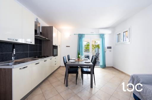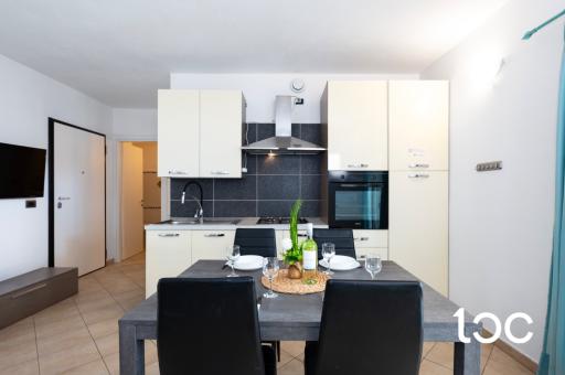 Inside the renowned Residence Gli Ulivi, an elegant complex of recent construction equipped with a condominium pool, we offer for sale a refined two-room apartment with two bathrooms.
