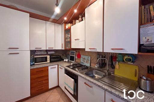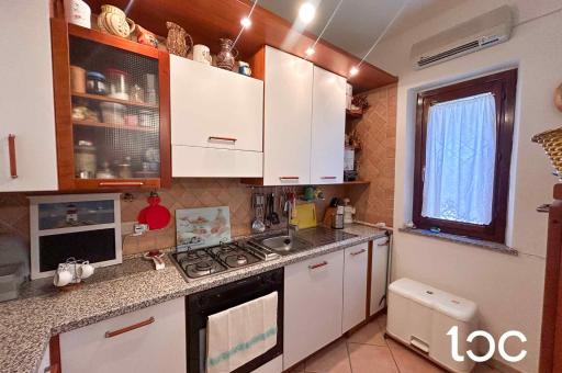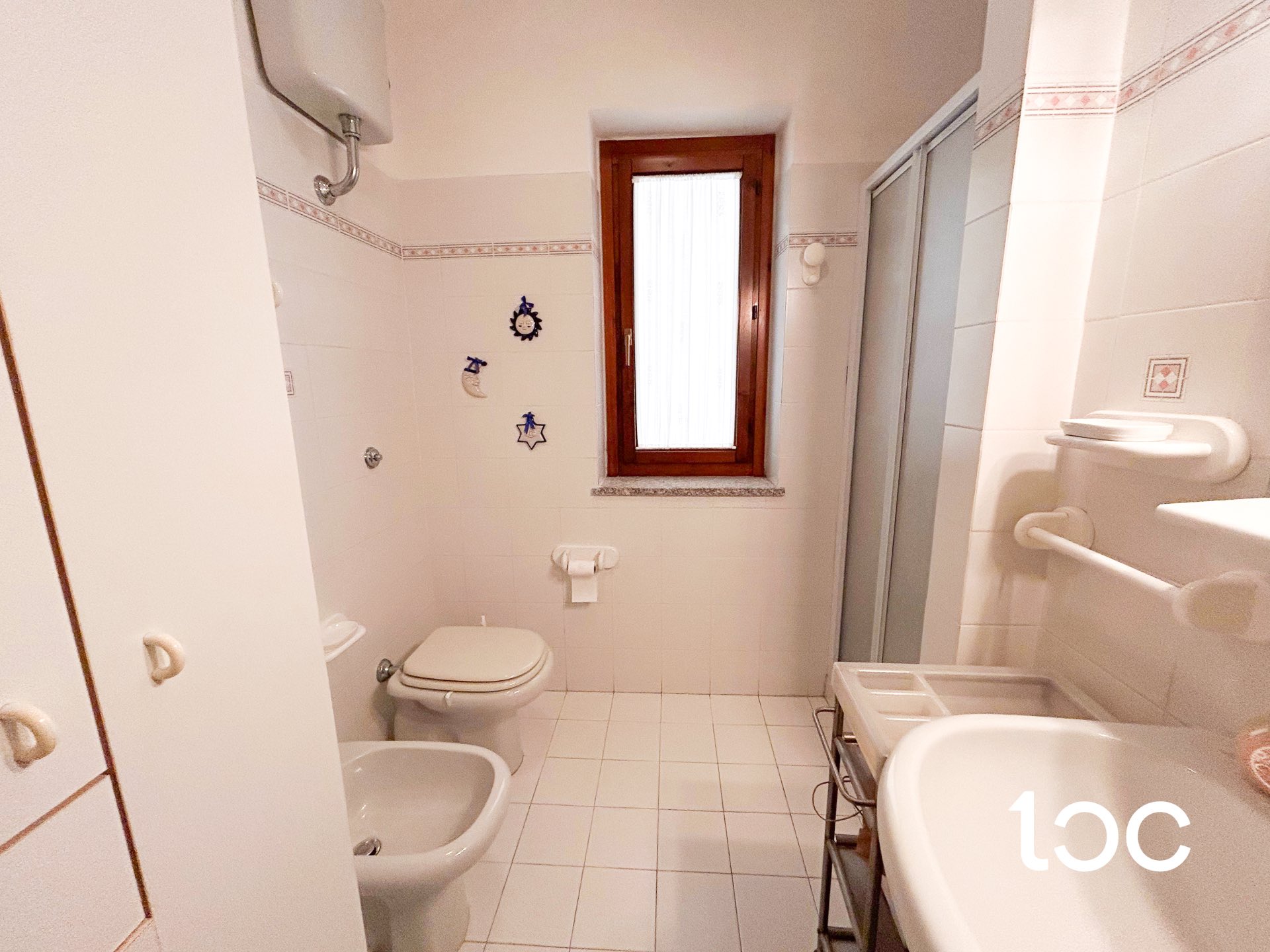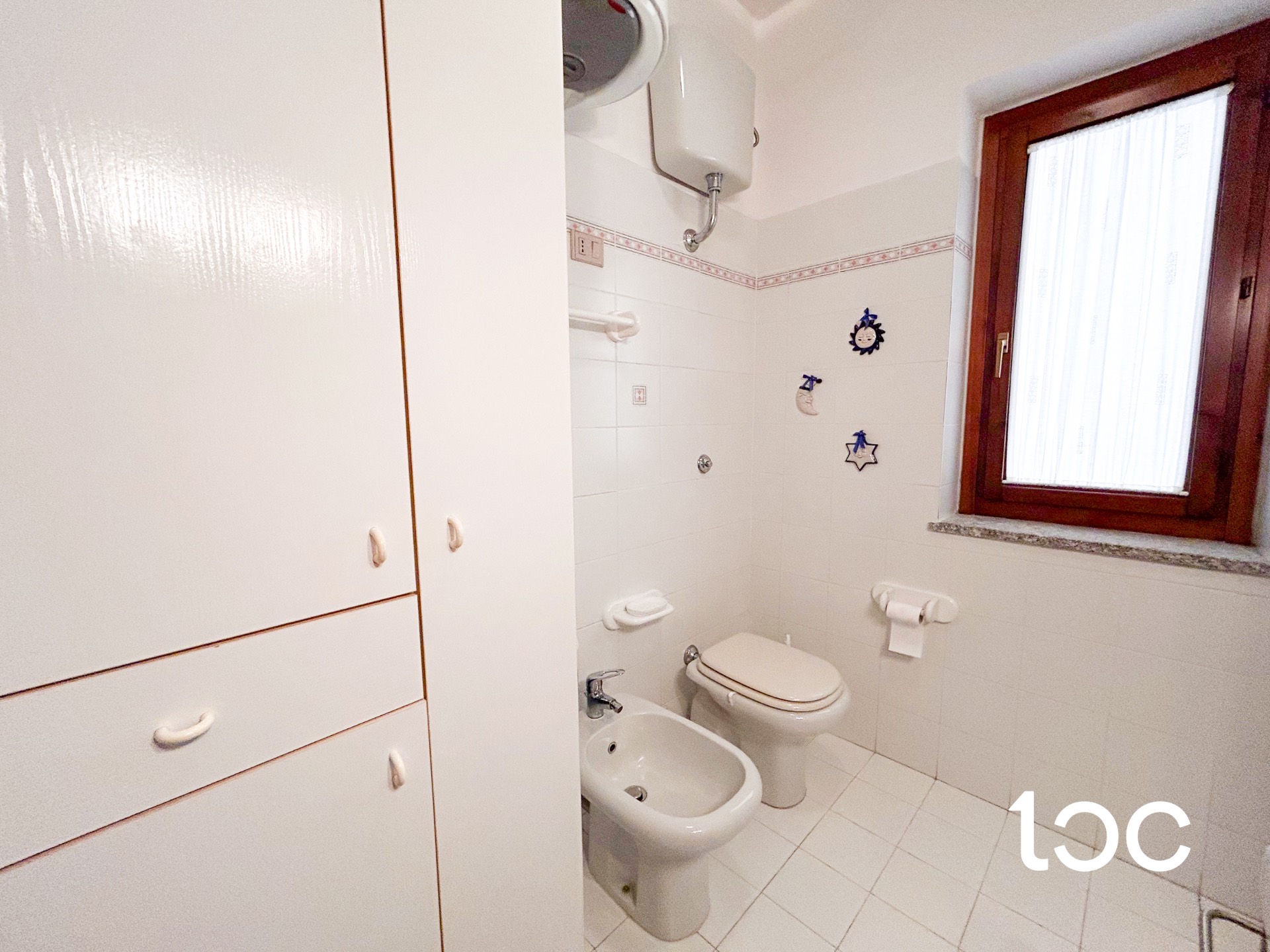 Inside, the apartment consists of a bright living-dining room, with separate kitchen and windowed bathroom, and offers convenient access to the rear patio, equipped with practical storage and a relaxation area ideal for summer evenings. The sleeping area includes a master bedroom, a second bedroom (perfect for guests or children) and an additional bathroom.