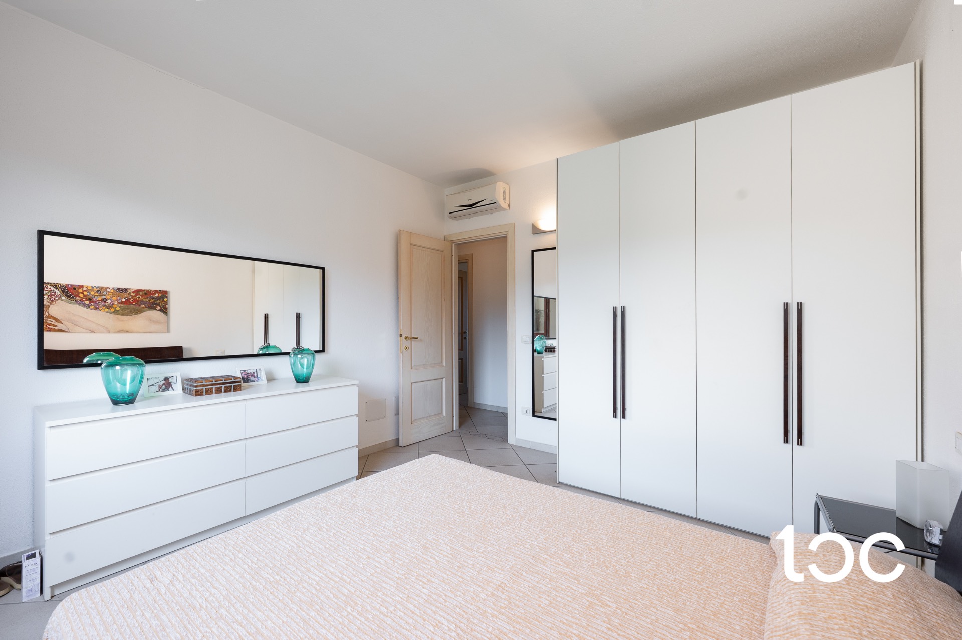 In Badualga locality, a few minutes from the center of San Teodoro and the renowned beaches of the area, we offer for sale an elegant apartment on the second floor inserted in a quiet and reserved residential context. The property is located in a hillside location that offers striking views of the surrounding landscape, while providing a pleasant feeling of privacy and relaxation. The apartment, part of a small complex of recent construction with bar-controlled access, stands out for its excellent finishes and well-distributed spaces. It consists of a bright living room with kitchenette, two bedrooms - one double and one twin - a windowed bathroom, a practical storage room and a comfortable covered veranda with open views of the hills. To complete the property we find a second storage room in the basement, accessible by an external staircase for exclusive use, and a private courtyard on the ground floor equipped with a water point, ideal for relaxing moments outdoors. The property is sold complete with furniture, air conditioning hot/cold, parking space owned and is ready to be inhabited immediately. Ideal solution for those seeking a home immersed in the quiet, without sacrificing proximity to the main services and the crystal clear sea of the northeastern coast of Sardinia.
