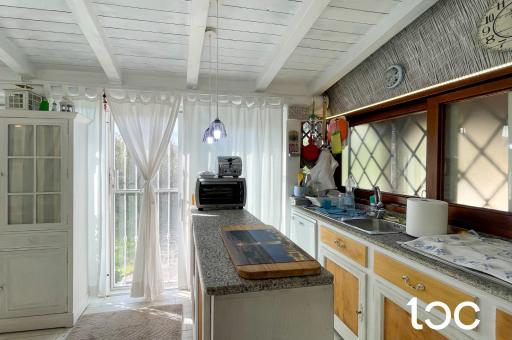 Going upstairs we find a loft with Velux and window, currently organized with four beds, ideal for guests or family.