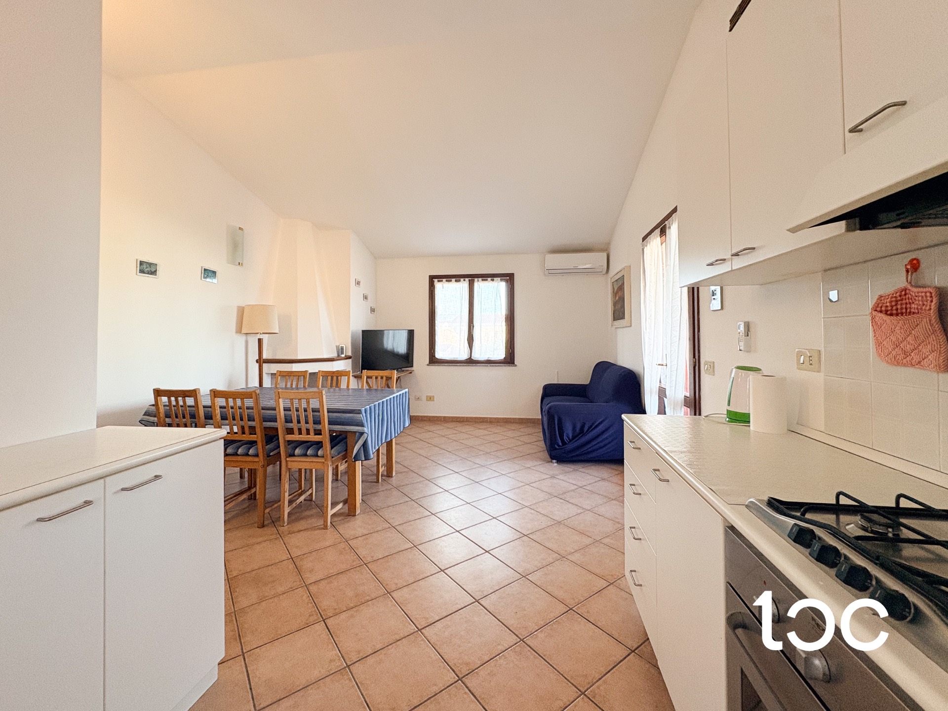 The property consists of two large double bedrooms, two bathrooms, one of which en suite, a bright living room with open kitchen and fireplace, an element that makes the environment cozy and livable even in the off-season. The spaces are well distributed and functional, designed to offer comfort both as a main residence and as a vacation home.