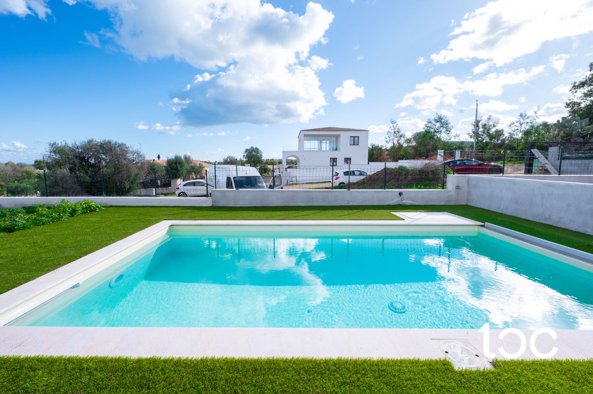 Outside, the private garden hosts a splendid swimming pool signed Piscine Castiglione, perfect for fully enjoying outdoor life, as well as an outdoor shower and a convenient reserved parking space. The green area is prepared for planting and can be customized according to one's taste.
