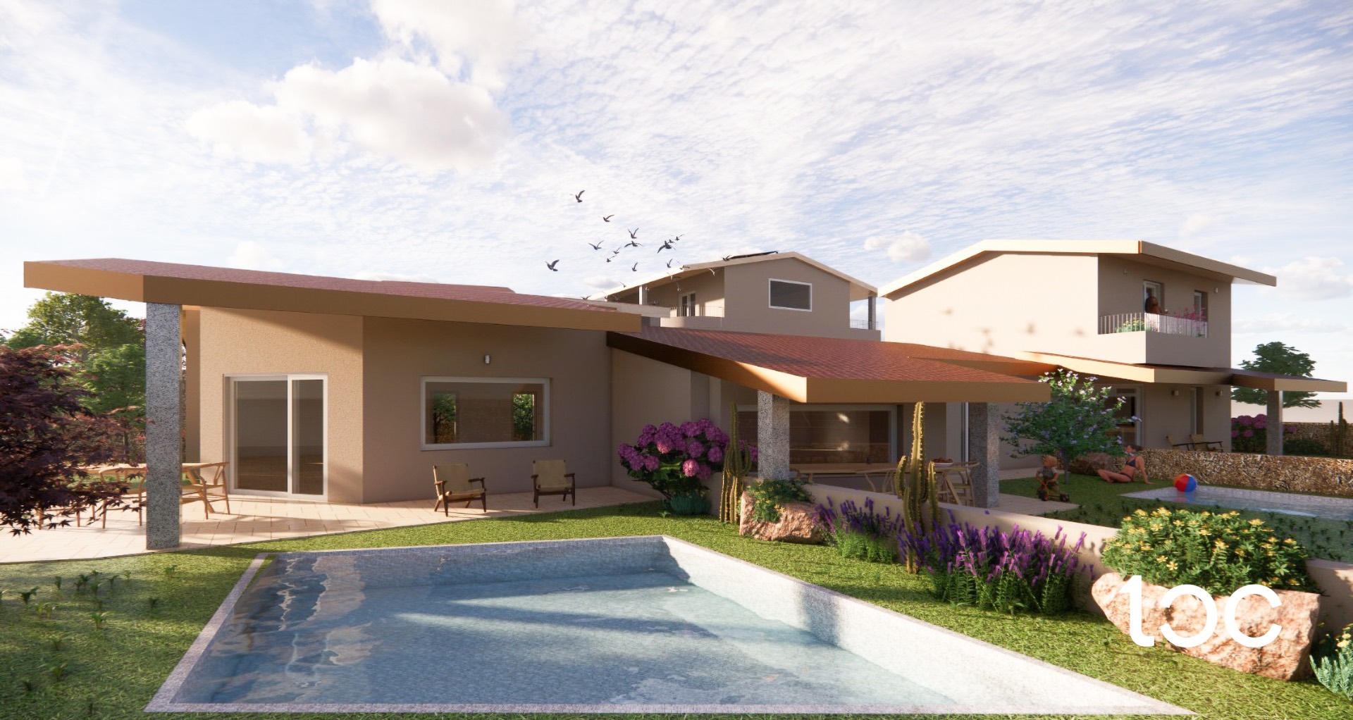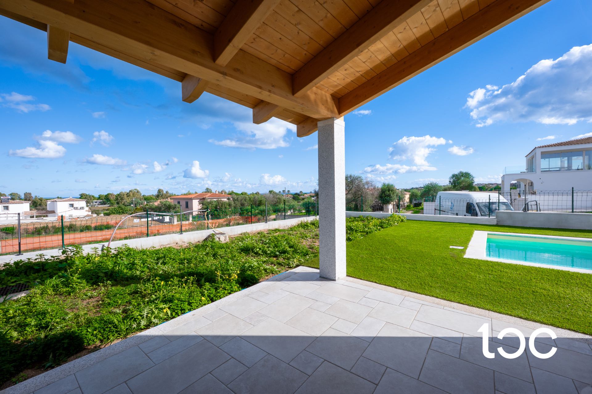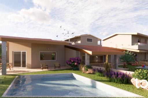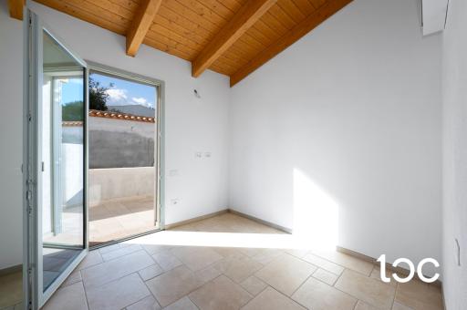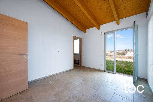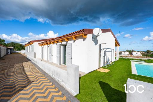 The property is developed entirely on the ground floor and welcomes its guests with a panoramic covered veranda, ideal for outdoor dining, relaxing moments and sunset dinners. The interior spaces are generous and well distributed: large living room, separate kitchen, three bedrooms and two bathrooms, finished with modern and high quality materials, chosen to offer comfort and elegance in every room.